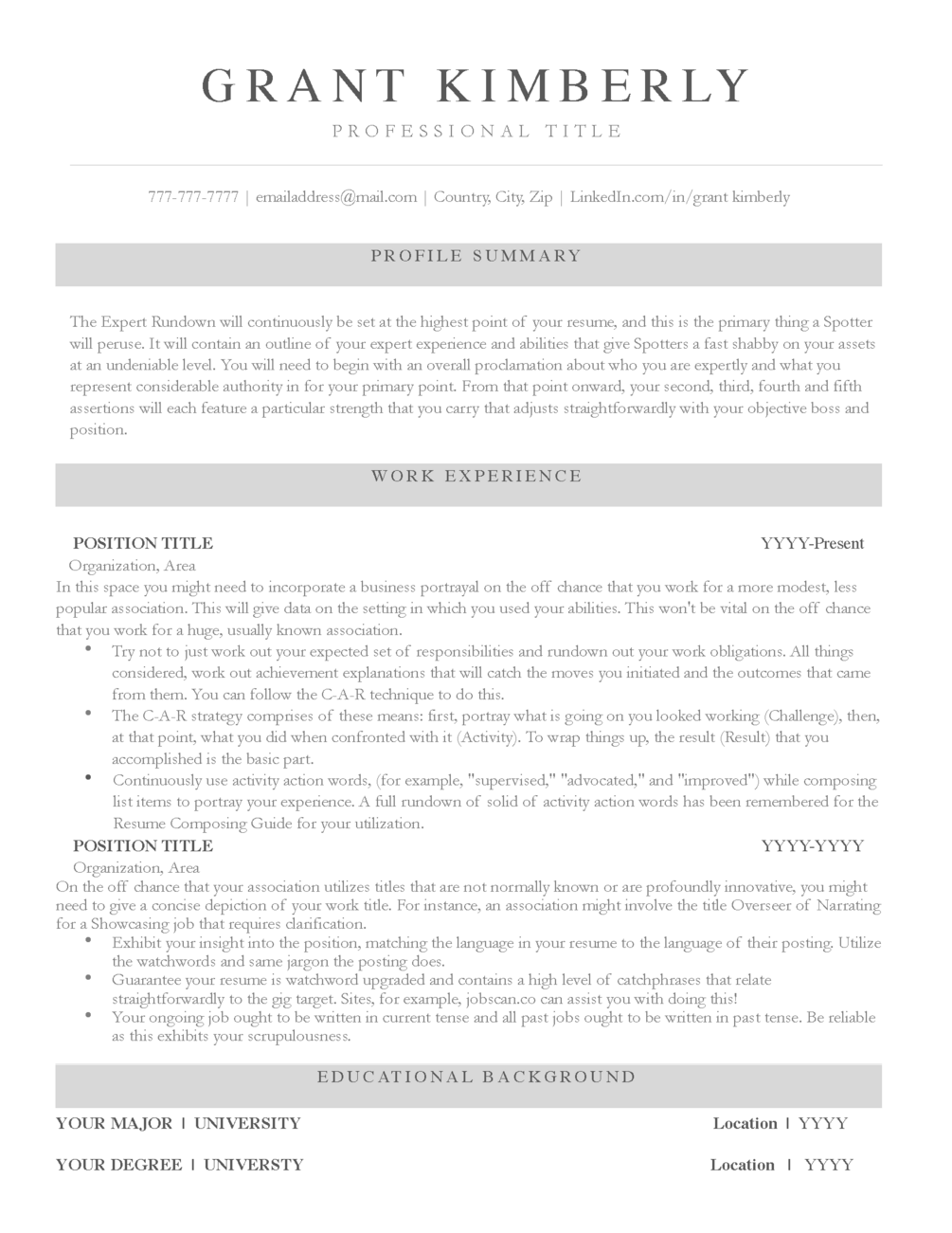 ATS Friendly Resume Template Kimberly Grant